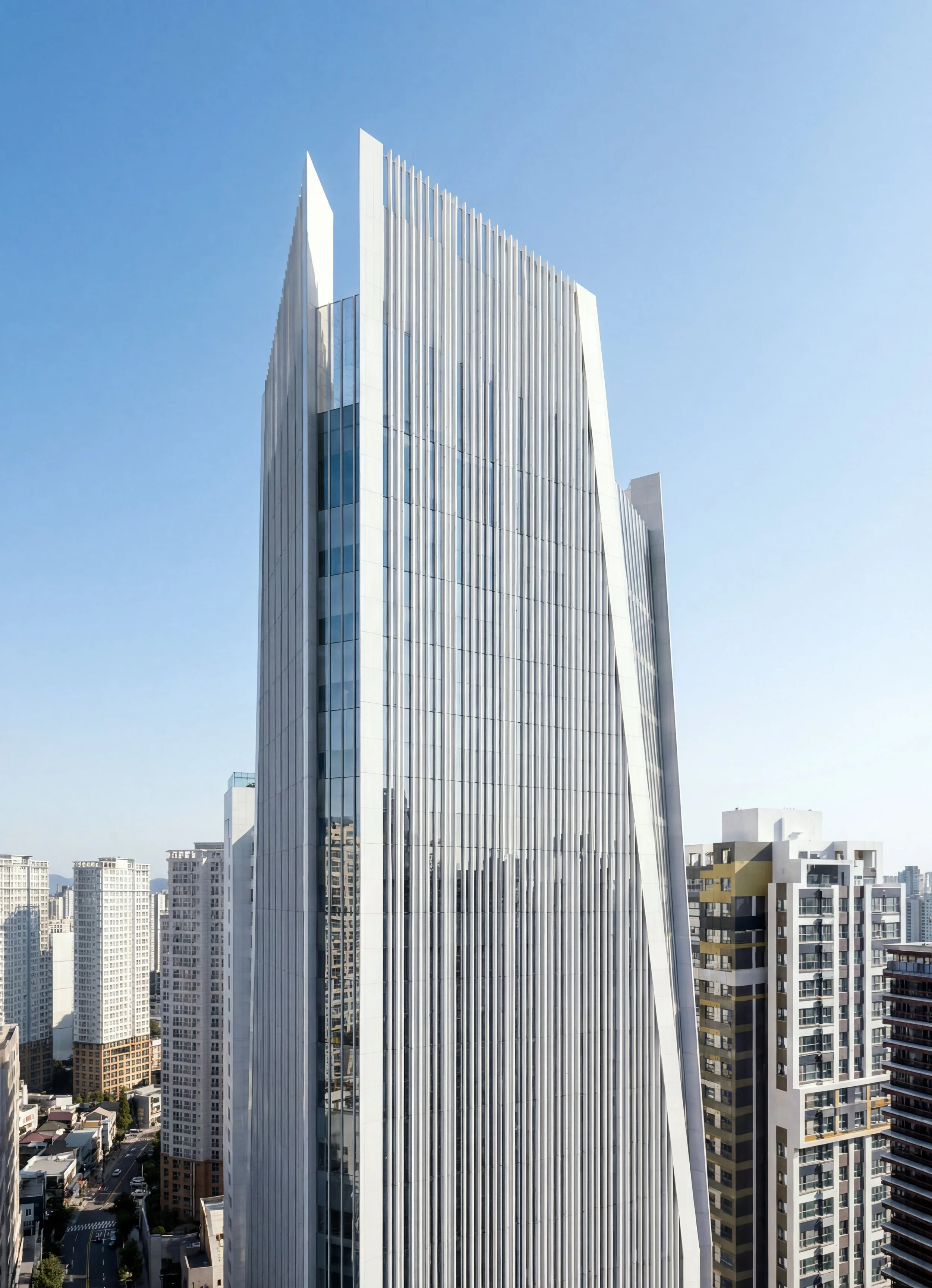 본 프로젝트의 외피는 내·외부를 가르는 수동적 경계가 아니라, 환경 성능을 수행하고 타워의 정체성을 구축하는 핵심적인 건축적 장치이다. 경제성, 기능성, 심미성이 입면 안에서 결합되고 통합되며, 건축주의 요구사항은 이 프로젝트의 디자인 논리를 확립하는 가장 강력한 동력이 될 수 있었다.