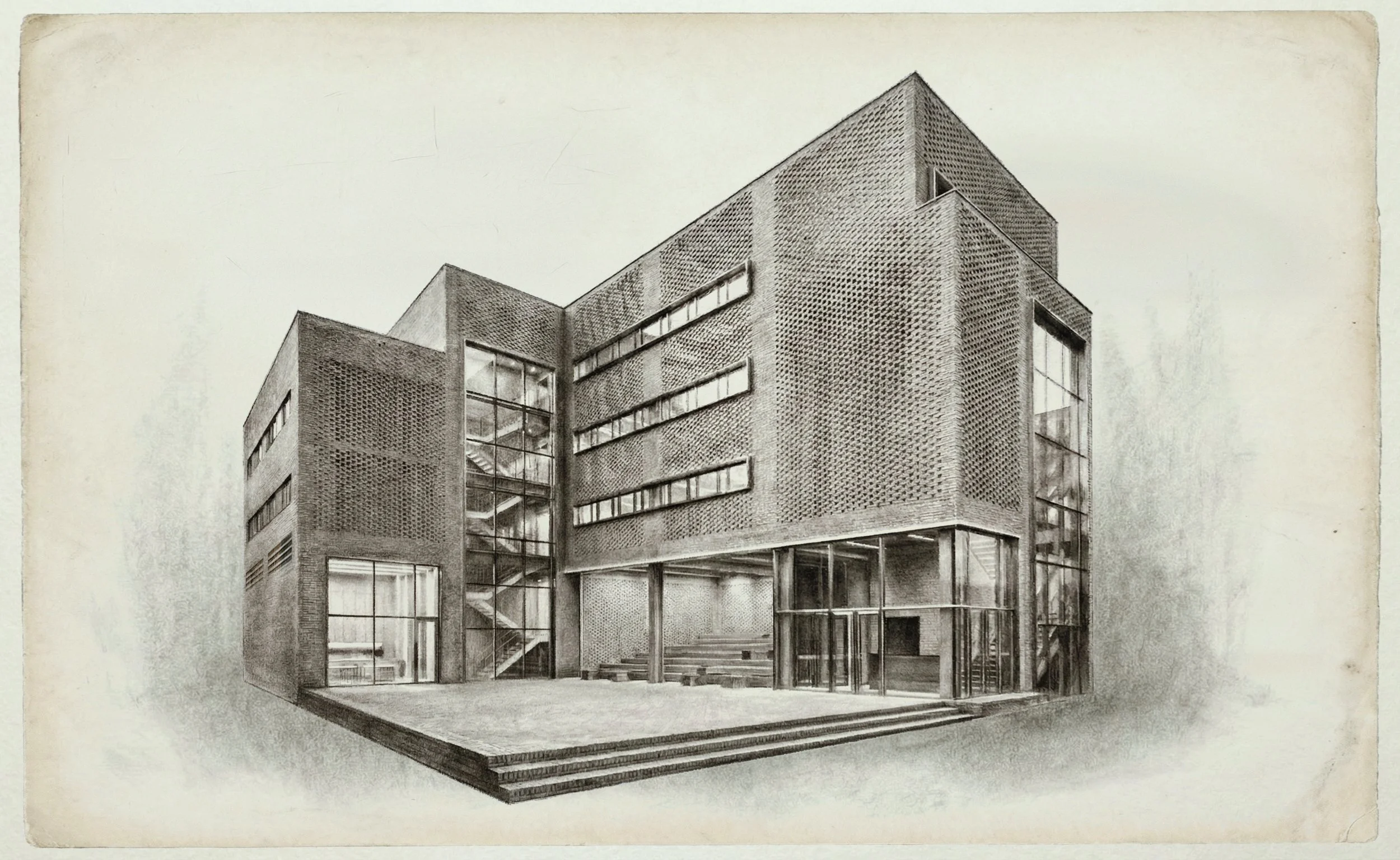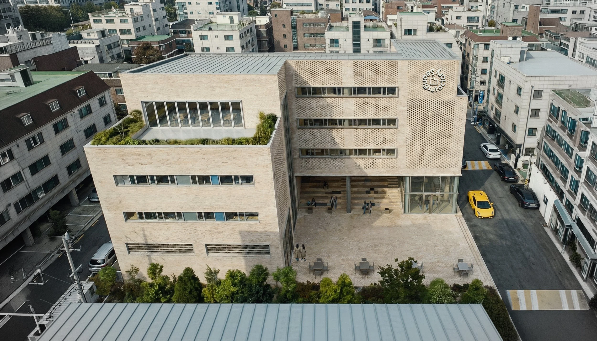 Once a place of production, the factory is reconfigured into an urban relational field where daily life and culture intersect, all while preserving local memories. The open plaza on the ground floor and the tiered seating beneath the pilotis structure serve as shared spaces where passersby naturally linger, functioning as a small theater for busking and conversation. The exterior brick paving extends into the interior, blurring spatial boundaries and acting as an "Urban Living Room" that connects pedestrians to the cultural programs on the upper levels. The façade, constructed with porous brickwork, allows light and gaze to permeate through its gaps, while inserted full-height glazing and stainless steel frames clearly articulate the identity of industrial regeneration through the contrast of materiality.