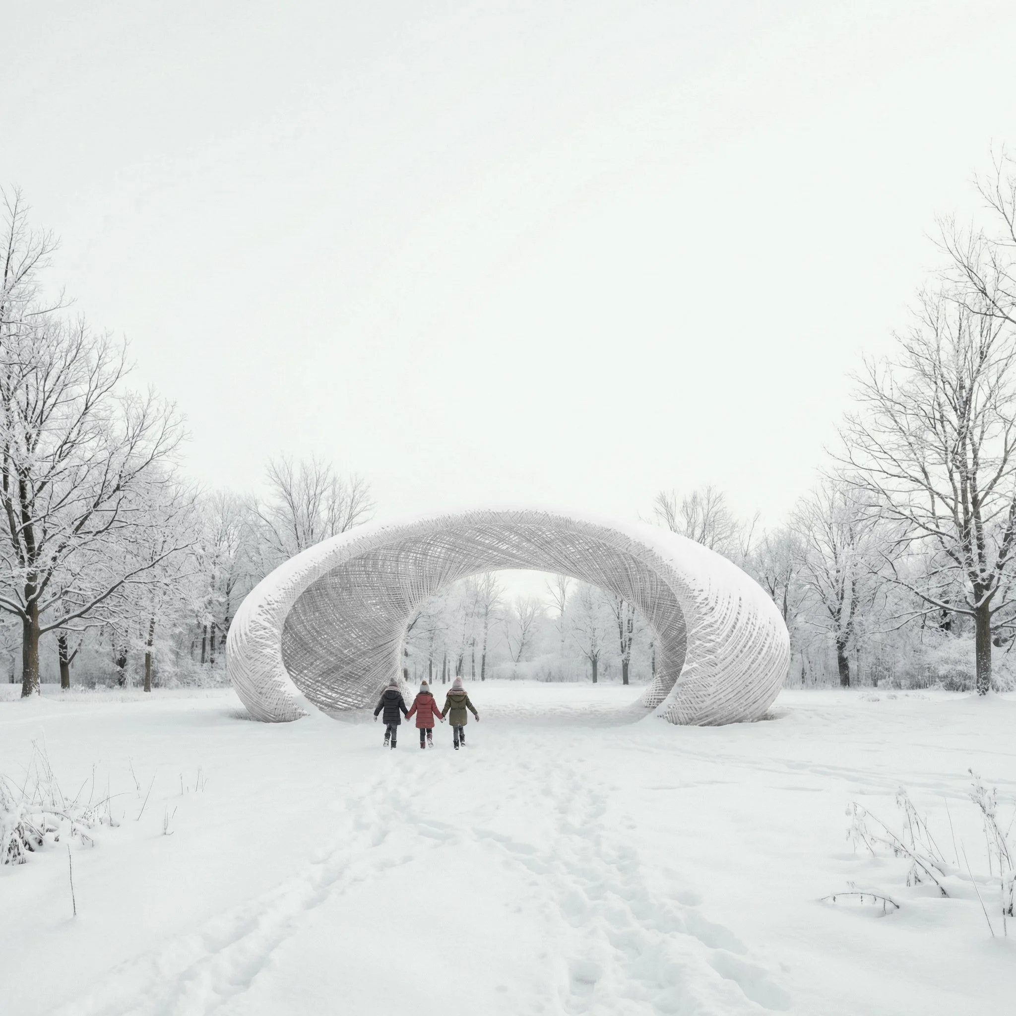 곡면의 내부로 진입하는 순간, 방문자는 물리적 공간을 넘어 응축된 감각의 밀도 속으로 들어선다. 빛은 정체되지 않고 흐르며, 그림자는 구조의 숨결처럼 미세하게 진동한다. 시간은 선형적으로 흐르기보다 자연의 리듬에 따라 축적되고 체감된다. 구조물은 단순한 배경에 머무르지 않고, 인간의 존재와 주변 환경 사이를 끊임없이 매개하는 능동적 장치로 기능한다.